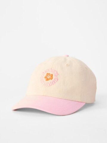 Made from cotton twill, this enzyme-washed, five-panel cap has an adjustable Velcro back, a slight curve peak, woven flag label, embroidery, and a contrast peak for a stylish, casual look.